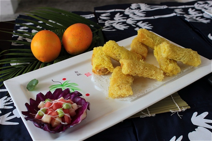 金网鳕鱼卷配沙律