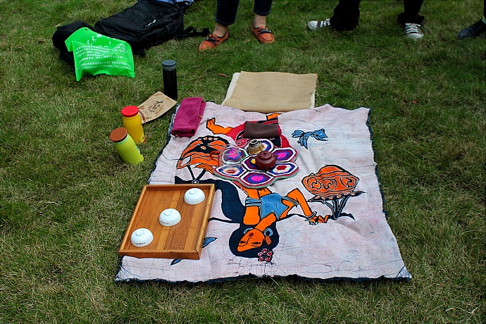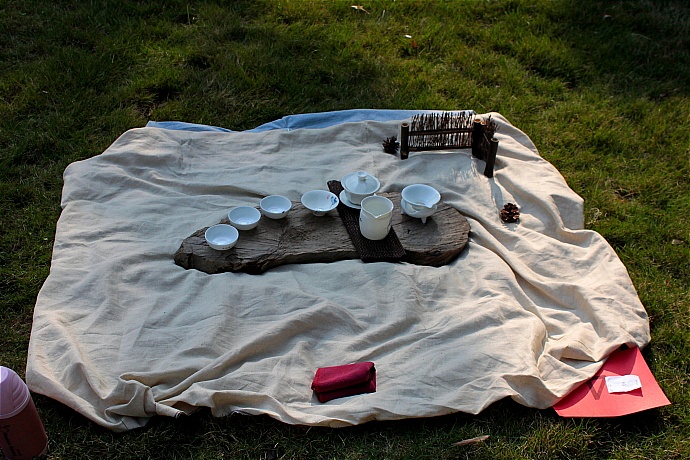 茶具:壶一把、杯子四只,奉茶盘、茶巾、热水瓶(茶会现场通常是不准备热水的,所以出门前请将热水备好)、坐垫各一。