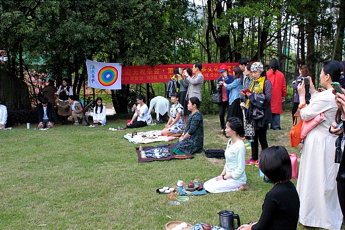 2014年4月11日,中韩两国茶叶爱好者在武夷山庄“无我茶会”碑记前进行了一次友好和谐的茶会活动。