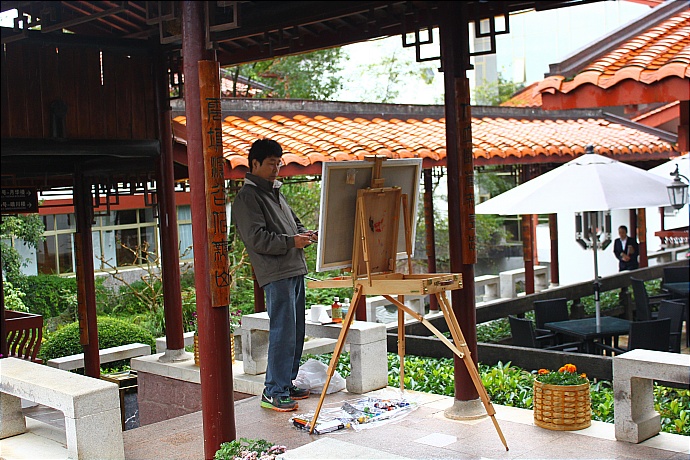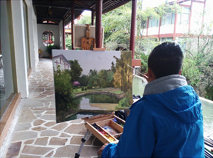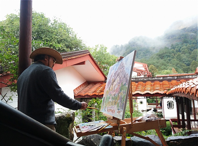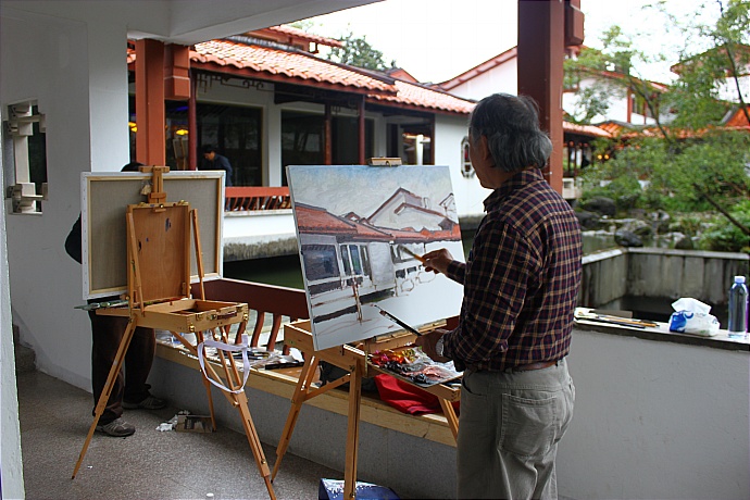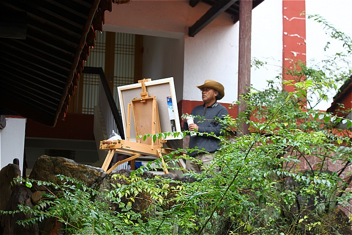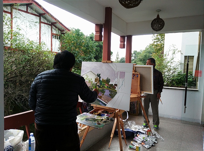 | 写生 | 武夷山庄,在雨中,挥洒笔墨。 |