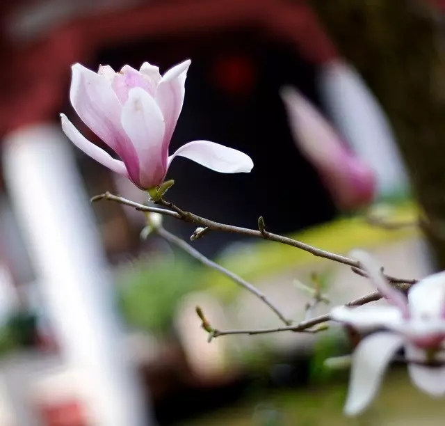 三角梅一片灿烂,玉兰花似乎也忍耐不住啦,